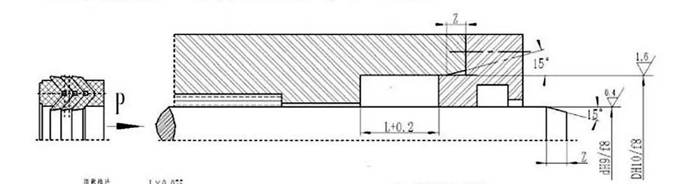 V-formede tætninger kan justeres i aksial dimension ved at justere pakningen for at opnå optimal tætning og friktion. Indledende slid efter langvarig drift kan forlænges ved at justere den aksiale dimension. Det anbefalede design for den justerbare tætningshulrums aksiale dimension er 1,025L, med et justeringsområde på 7,5%L.