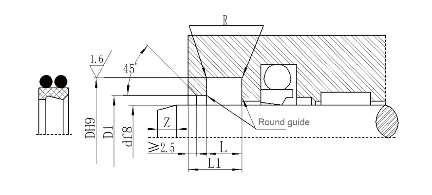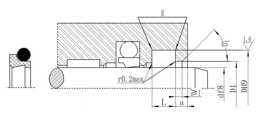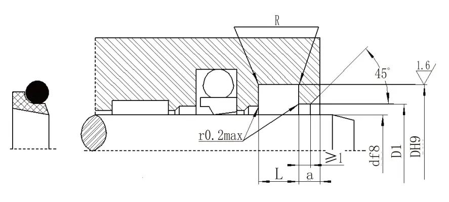 | Skaftets diameterområde D F8 | Groove Diameter Dh9 | Trin diameter D1 H11 | Groove bredde L+0.2 |