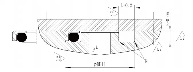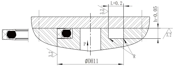 | Område af den ydre diameter Dh11 | Groove dybde h-0.05 |
