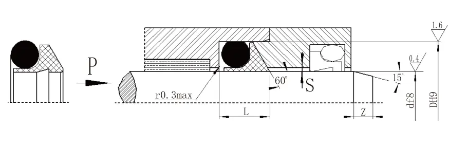 | 2. Til tryk> 40MPa bruger ROOT -området for tætningen H8/F8 Fit -tolerance. | ||||||||||