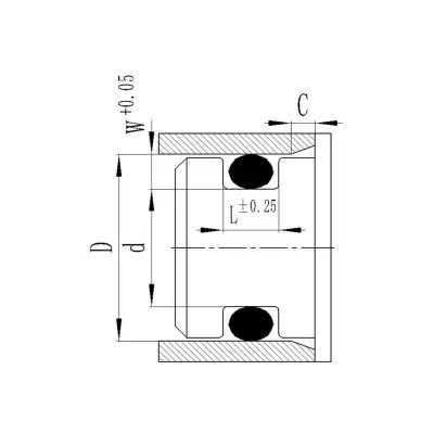 O-ring tråddiameter D2 | Groove dybde W+0,05 | Groove bredde L ± 0,25 | C | O-ring tråddiameter D2 | Groove dybde W+0,05 | Groove bredde L ± 0,25 | C | O-ring tråddiameter D2 | Groove dybde W+0,05 | Groove bredde L ± 0,25 | C |