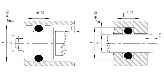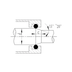 Fordi O-ringen vil blive presset under installationen, for at undgå alvorlig skade, skal hulenden eller skaftets ende behandles til en 15 ° ~ 20 ° affasning, og kanterne skal afrundes og burrs fjernes. Hvis O-ringen skal passere gennem et tværgående hul under installationen, skal overgangshullet også afskales eller afrundes.