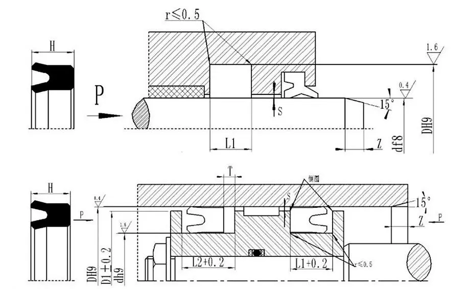 UHS U-Seal er en symmetrisk tætning til både boring og aksel applikationer. Den har et mindre tværsnit og kan monteres i integrerede riller. En holdering er påkrævet ved roden, når den bruges under tryk på 16-32 MPa.
